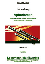 The aphorisms for three recorders are a piece of performance for advanced players. They are thought for groups, who are open-minded for something new. These aphorisms are especially useful for contribution to “youth playing music”. The singular movements can be performed separately as well.