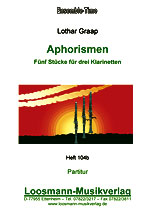 The aphorisms for three clarinets are a piece of performance for advanced players. They are thought for groups, who are open-minded for something new. These aphorisms are especially useful for contribution to “youth playing music”. The singular movements can be performed separately as well.